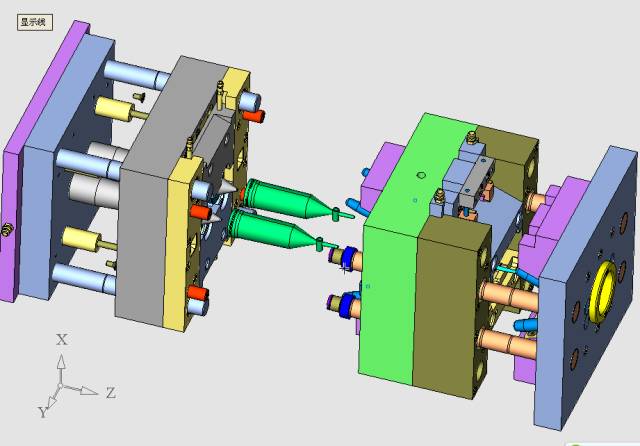 模具的總體結構是這樣的,下圖是模具打開的狀況。