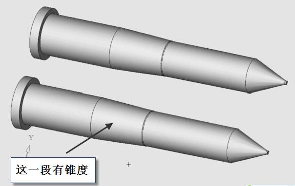 根據產品的特征,產品的外分模面一定是在中間的。但是由于側抽芯是一邊長一邊短,所以,分出來的滑塊1是這樣的,見下圖。